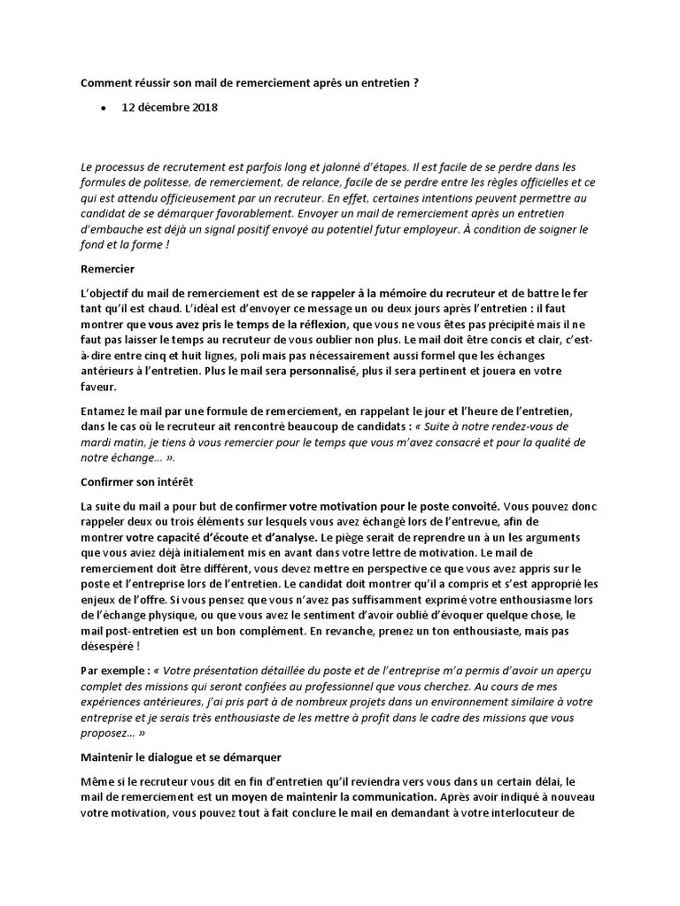 Il est parfois plus difficile d'obtenir le deuxième que le premier. Communiquer mon nom au patient communiquer un numéro de téléphone annuler. L'entretien d'embauche ou entretien de recrutement a pour but de vérifier en quoi et comment les compétences du candidat sont à même de répondre au poste à pourvoir. Après l'entretien, l'attente arrive, accompagné de l'incertitude de. Ces entretiens ne visent pas à évaluer le marché de l'emploi (c'est le rôle des salons et des forums).